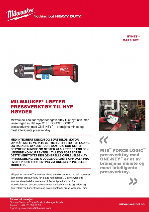 Her finner du pressemeldinger, nyheter og artikler om MILWAUKEE®